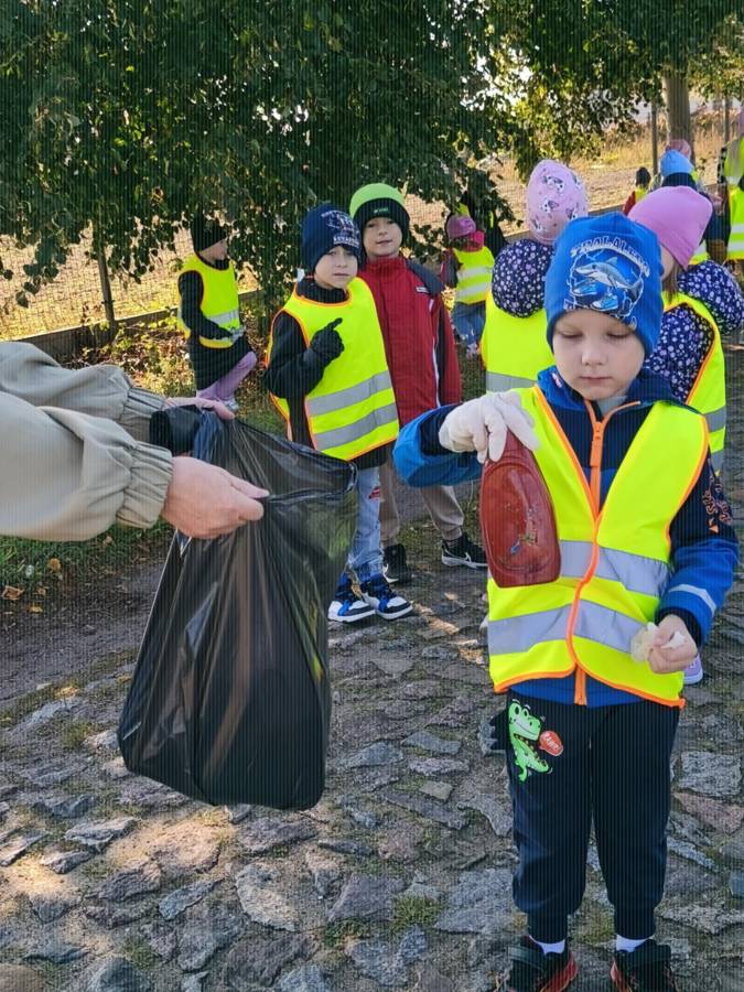 Nasze przedszkolaki po raz kolejny przyłączyły się do akcji Sprzątamy dla Polski. W piękne słoneczne przedpołudnie 3 października wszystkie grupy wraz z nauczycielami wyruszyły zaopatrzone w gumowe rękawice i worki na wielkie sprzątanie terenu, który znajduje się w pobliżu przedszkola. Dzieci z wielkim zaangażowaniem zbierały odpady, papierki, butelki, dobrze się przy tym bawiąc. Akcja polegała na sprzątaniu porzuconych odpadów na publicznych terenach zielonych.