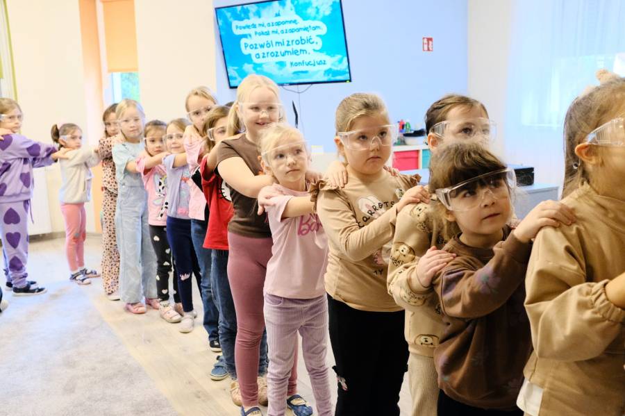 Spotkanie uatrakcyjnił pokaz iluzji oraz ,,zaczarowanego ołówka,, , który wzbudził wśród dzieci wiele radości, śmiechu i zachwytu. Dzieci z zaangażowaniem uczestniczyły w całym wydarzeniu, rozwijając kreatywność, ciekawość poznawczą oraz umiejętność obserwacji.