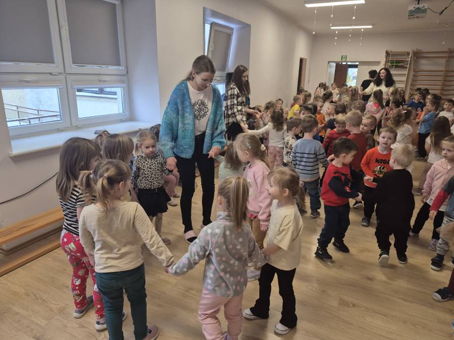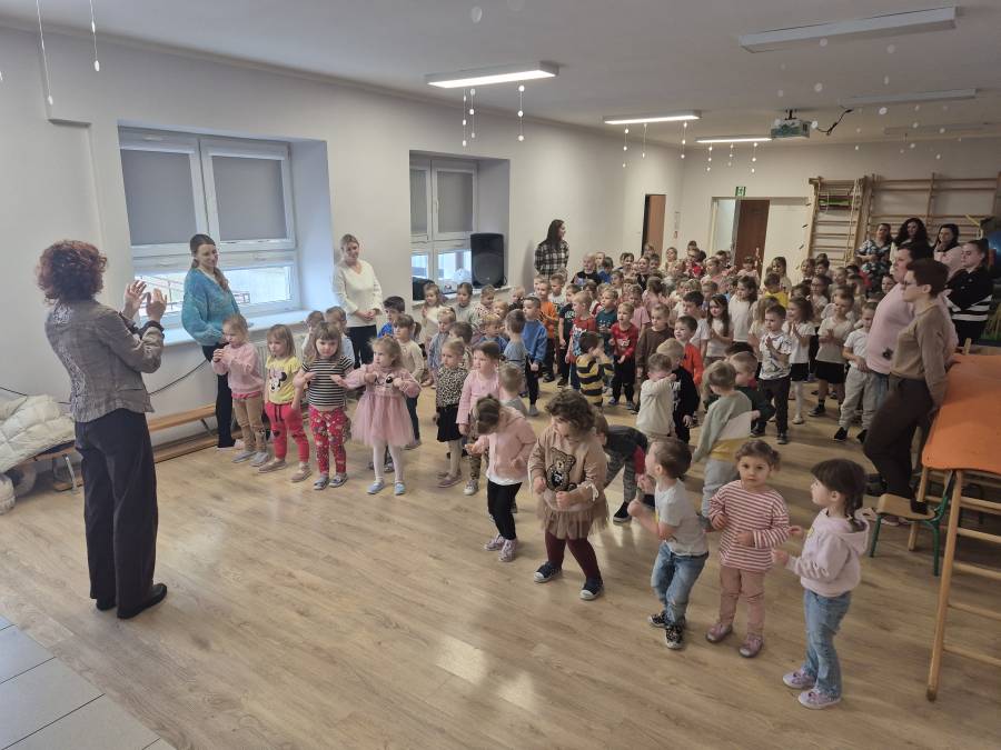 W poniedziałek 12 stycznia jak w każdym miesiącu gościliśmy artystów z Płockiej Orkiestry Symfonicznej w Płocku. Wydarzenie pod hasłem "Z muzyką nie zawsze na poważnie" zgromadziło całą społeczność przedszkolną. Sala zamieniła się w prawdziwy, huczny bal, a zgromadzeni zostali zabrani w wyjątkową muzyczną podróż po całym świecie.