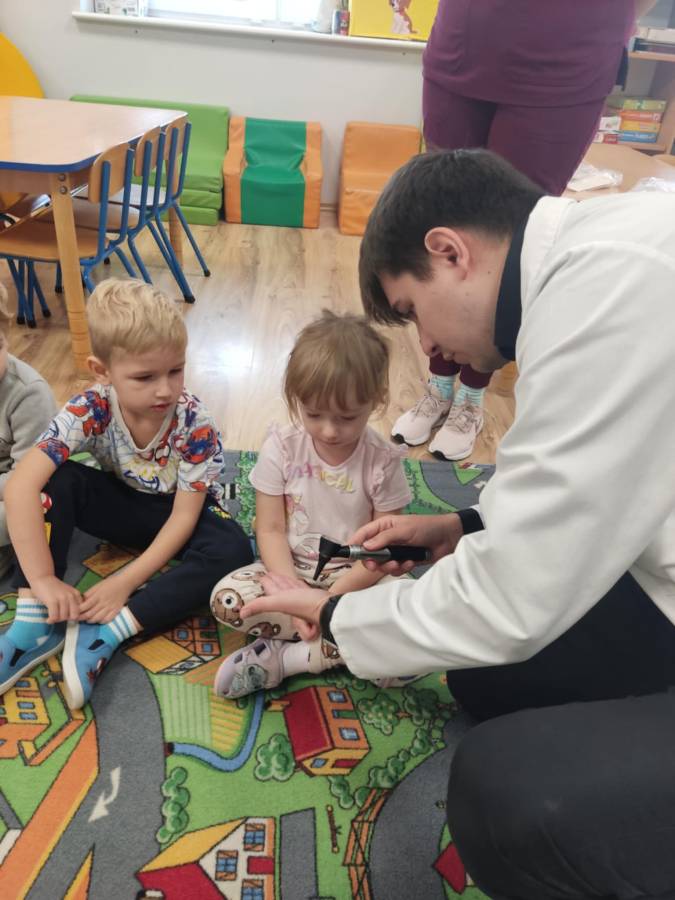 W grupie Smerfy odbyły się wyjątkowe zajęcia z udziałem lekarza i pielęgniarki. Dzieci miały okazję poznać specyfikę pracy w służbie zdrowia, a także zobaczyć z bliska narzędzia używane przez personel medyczny, takie jak stetoskop, otoskop, młotek neurologiczny czy strzykawki. Przedszkolaki, dowiedziały się do czego służą poszczególne przyrządy.
