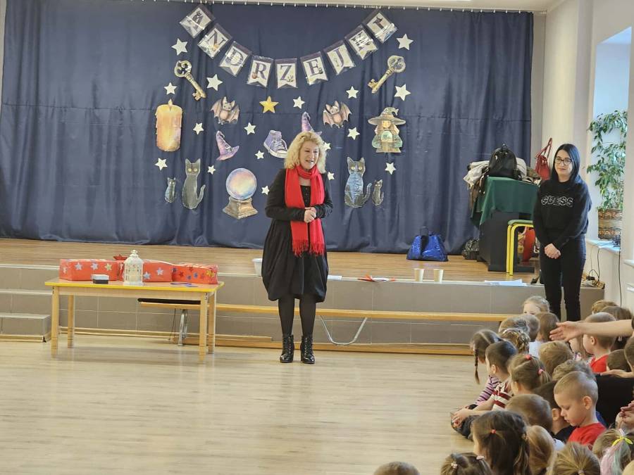 Spotkanie uatrakcyjnił pokaz iluzji oraz ,,zaczarowanego ołówka,, , który wzbudził wśród dzieci wiele radości, śmiechu i zachwytu. Dzieci z zaangażowaniem uczestniczyły w całym wydarzeniu, rozwijając kreatywność, ciekawość poznawczą oraz umiejętność obserwacji.