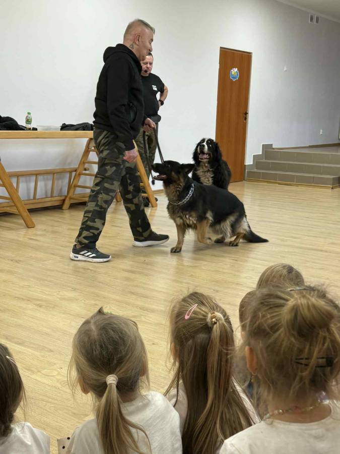 Behawioryści zaprezentowali różne ćwiczenia z udziałem owczarka niemieckiego i bernejczyka, pokazując, jak reagują na polecenia oraz jak zachować spokój w obecności grupy dzieci. Przedszkolaki mogły obserwować, zadawać pytania i pod kontrolą specjalistów brać udział w prostych interakcjach z psami.