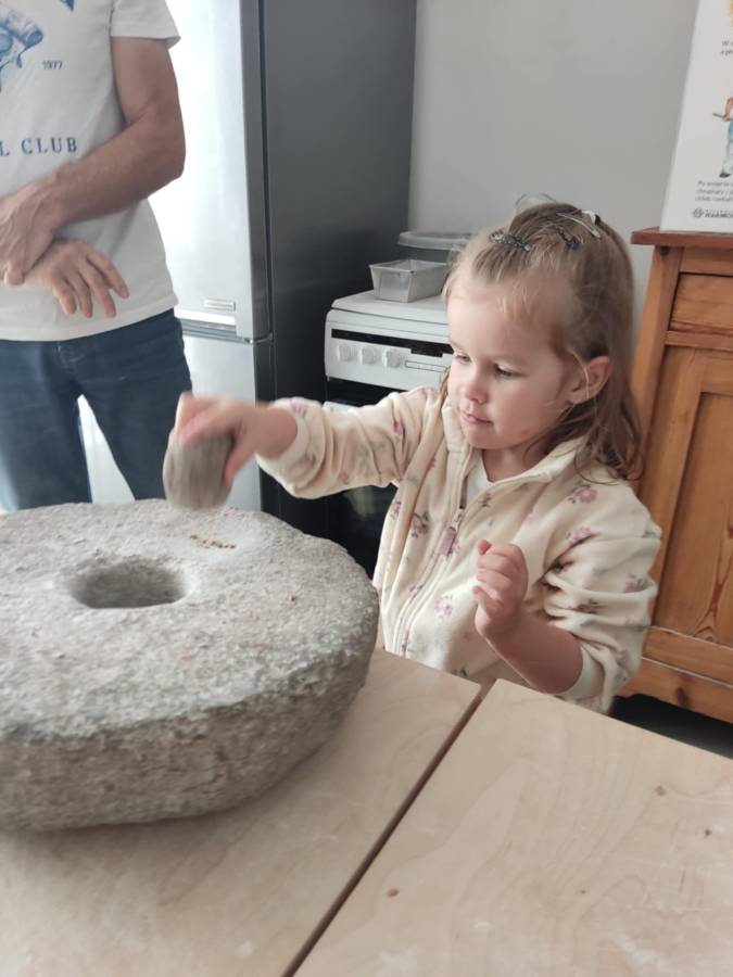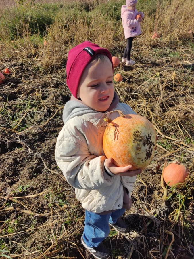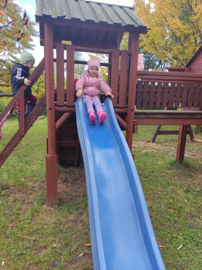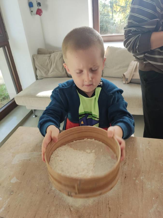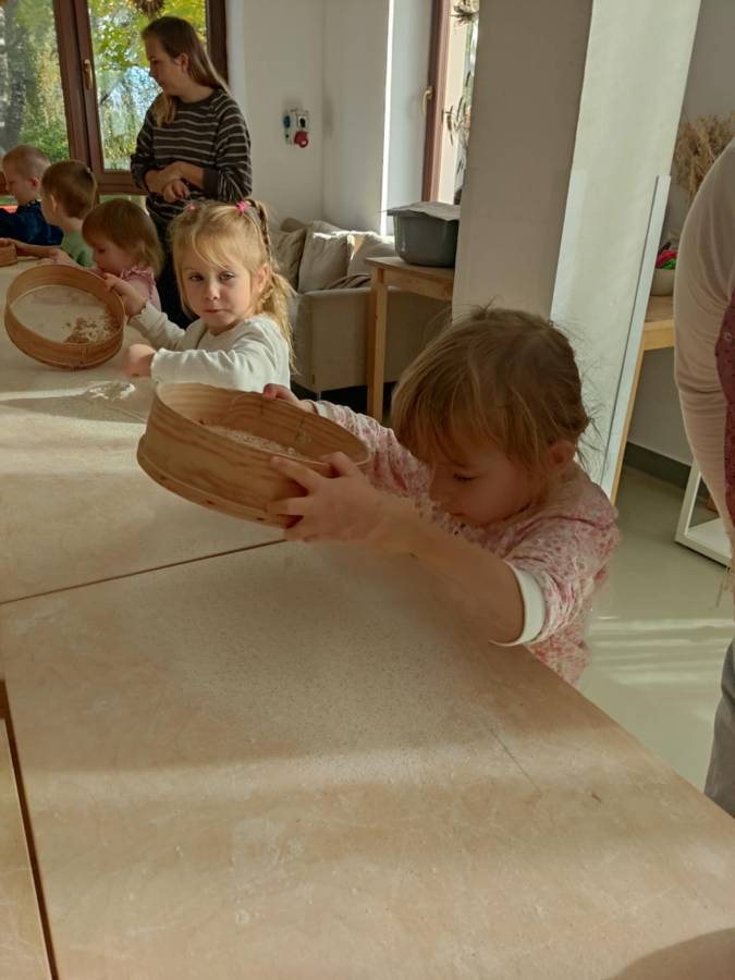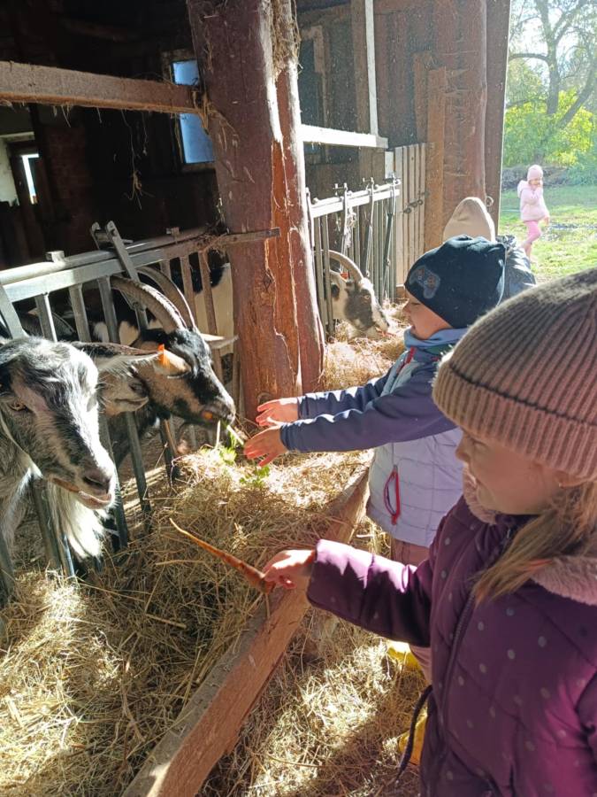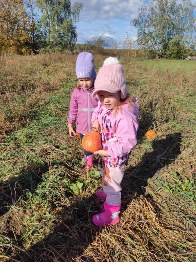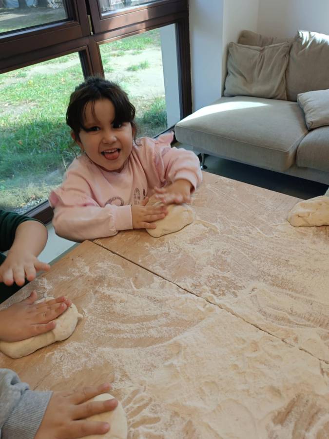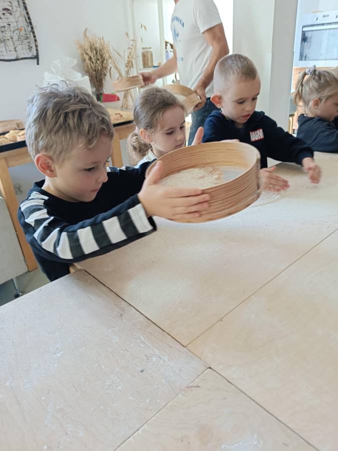 W dniu dzisiejszym grupy Smerfy i Misie udały się na wycieczkę do Stowarzyszenia Ekologiczno-Kulturalnego w Grzybowie. Dzieci wysłuchały ciekawej opowieści o tradycyjnym pieczeniu chleba, a następnie samodzielnie formowały i piekły pyszne bułeczki. Podczas zwiedzania gospodarstwa mogły zobaczyć różne zwierzęta i dowiedzieć się, jak wygląda ich codzienne życie. Na uczestników czekało również drugie śniadanie przygotowane z lokalnych produktów oraz wspaniała zabawa na placu zabaw. Na zakończenie dzieci brały udział w zbieraniu dyń, co sprawiło im wiele radości.