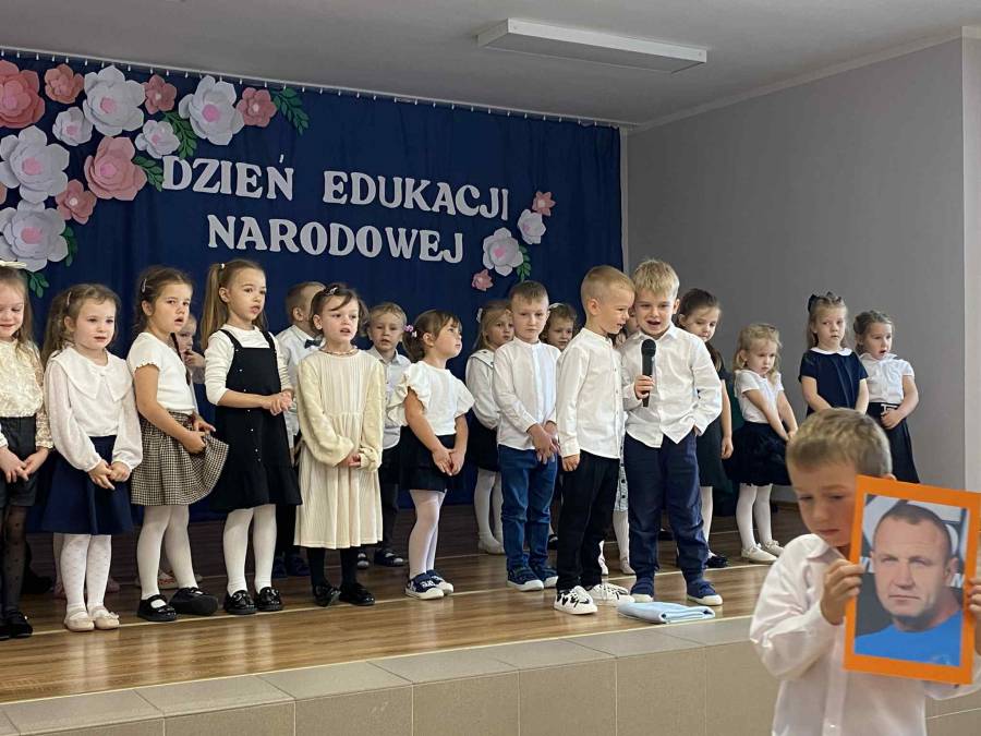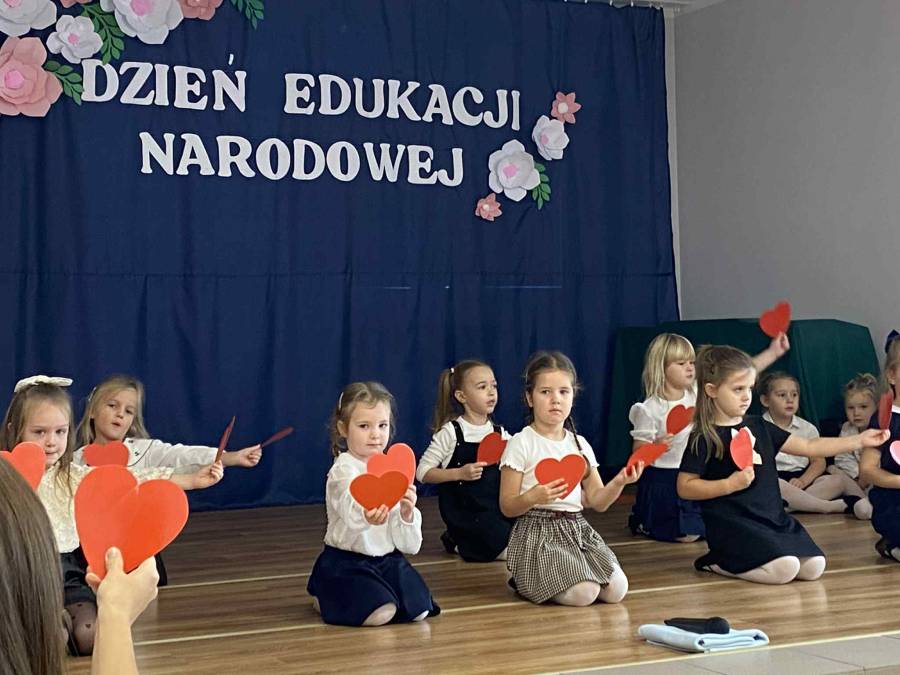 Z okazji Dnia Edukacji Narodowej w naszym przedszkolu odbył się uroczysty występ przygotowany przez dzieci z grupy Misie i Krasnale. Przedszkolaki zaprezentowały piosenki, wiersze oraz krótkie inscenizacje taneczne, w których wyraziły swoją wdzięczność nauczycielom i wszystkim pracownikom przedszkola za ich codzienny trud, cierpliwość i serce wkładane w wychowanie. Występ przebiegł w ciepłej, radosnej atmosferze. Był to piękny, wzruszający sposób na uczczenie tego wyjątkowego dnia.