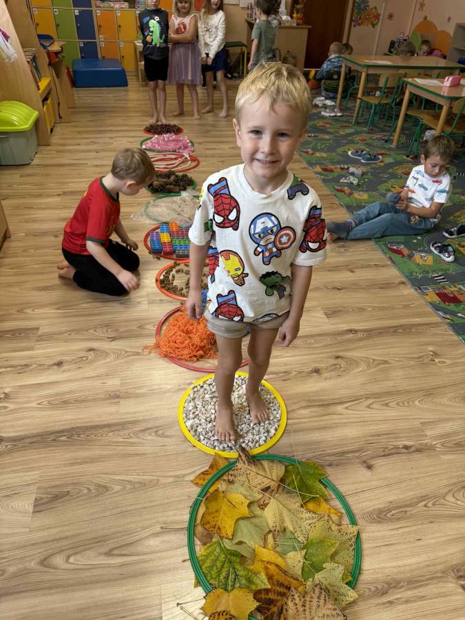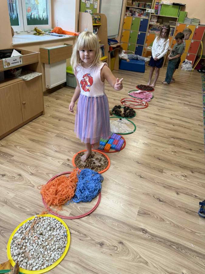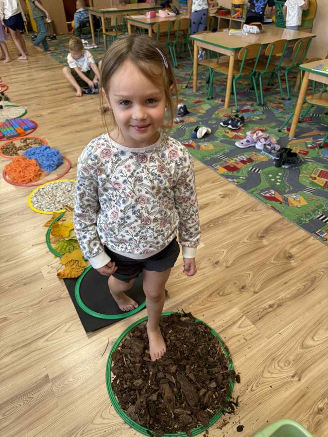 Celem zajęć było rozwijanie zmysłu dotyku, pobudzanie ciekawości poznawczej oraz dostarczanie pozytywnych doświadczeń sensorycznych. Przedszkolaki świetnie się bawiły, a bose stópki długo jeszcze pamiętały te wyjątkowe doznania!