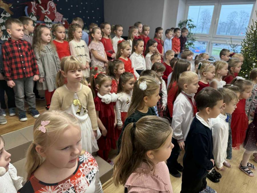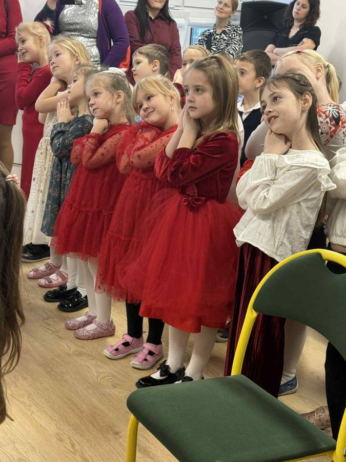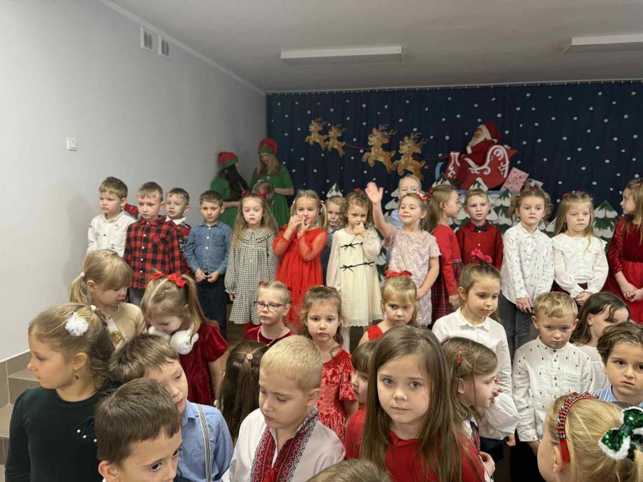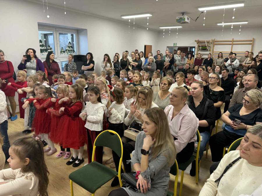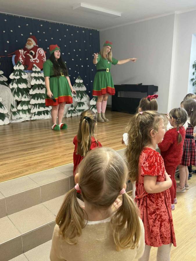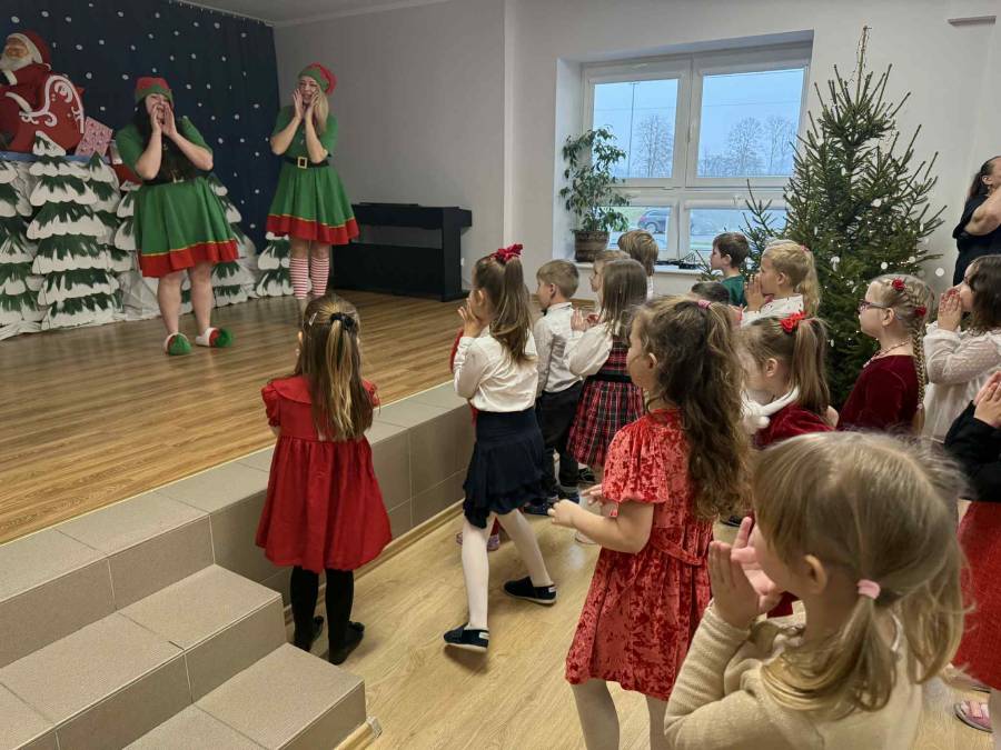 Podczas świątecznego spotkania na scenie wystąpiły przedszkolaki, które z wielkim zaangażowaniem zaprezentowały świąteczne piosenki oraz tradycyjne kolędy. Mali artyści wzruszyli i zachwycili publiczność, wprowadzając wszystkich w wyjątkowy, bożonarodzeniowy nastrój. Po występach dzieci wzięły udział w radosnych animacjach prowadzonych przez wesołe elfy. Były wspólne tańce, zabawy ruchowe oraz śmiech, który rozbrzmiewał w całej sali. Niespodzianką dla najmłodszych było także spotkanie ze Świętym Mikołajem, który serdecznie przywitał dzieci, rozmawiał z nimi i zostawił drobne upominki. Dodatkową atrakcją okazało się pojawienie Grincha, który początkowo próbował ukraść świąteczny nastrój, jednak dzięki radości i życzliwości dzieci szybko dołączył do wspólnej zabawy. Spotkanie przebiegło w ciepłej, radosnej atmosferze i na długo pozostanie w pamięci uczestników jako wyjątkowe, pełne magii świąt wydarzenie.